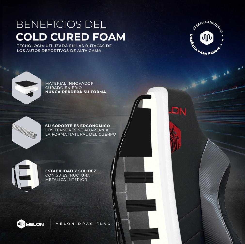 Cold-Cured foam (ESPUMA CURADA EN FRIO): Misma construcción de base espumosa que los autos de alta gama.